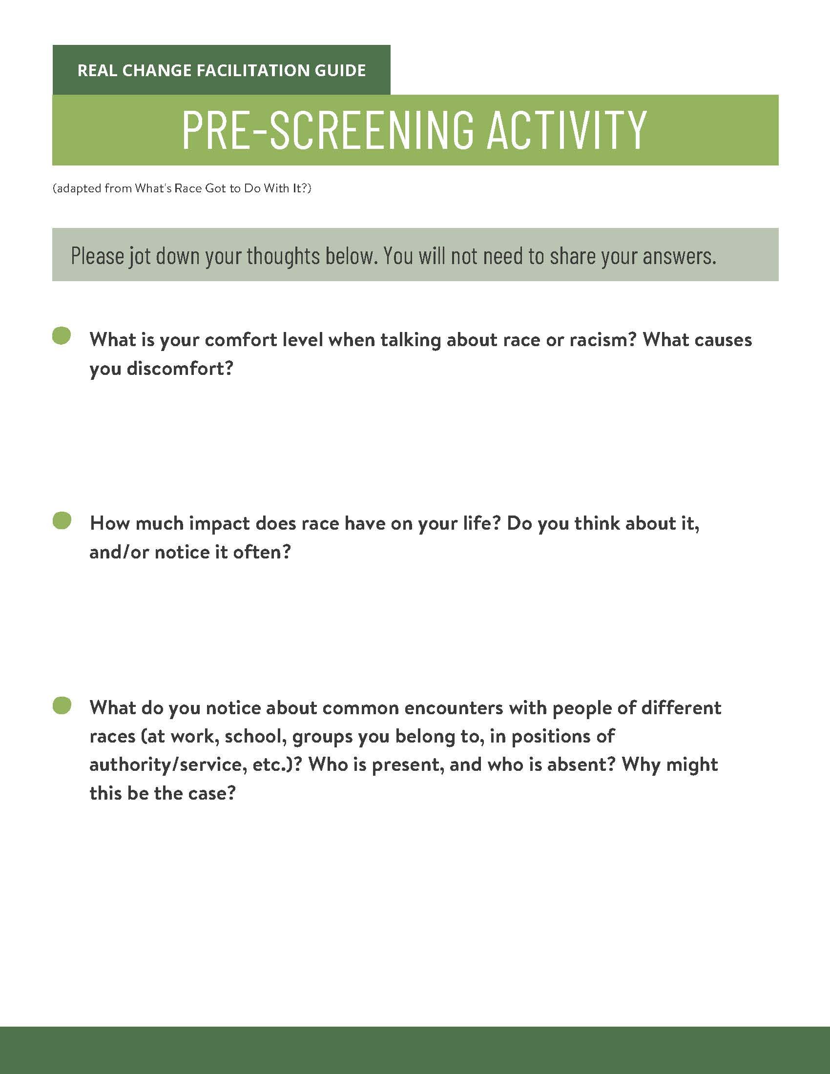 We have a more fulsome definition in the #RealChange Facilitator’s Guide. However, our working definition of racism is that of an umbrella term that encompasses all acts of othering, bias, discrimination, microaggressions, and subtle acts of exclusion.