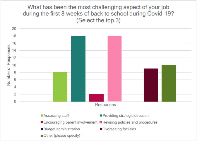 Schools in the Brandon School Division (BSD) have been back in session for eight weeks. Back to school this year has been unlike any other because of the Covid-19 pandemic. The focus of this survey was to learn more about how school administrators and leaders in BSD are doing in these first two months back to school. The objectives of this survey were to (1) identify the current challenges faced by administrators and school leaders due to the pandemic; (2) gauge how administrators, staff, parents, and students are doing during this time; (3) share stories of successes; and (4) identify ways that BSD can support administrators and school leaders during this time.
